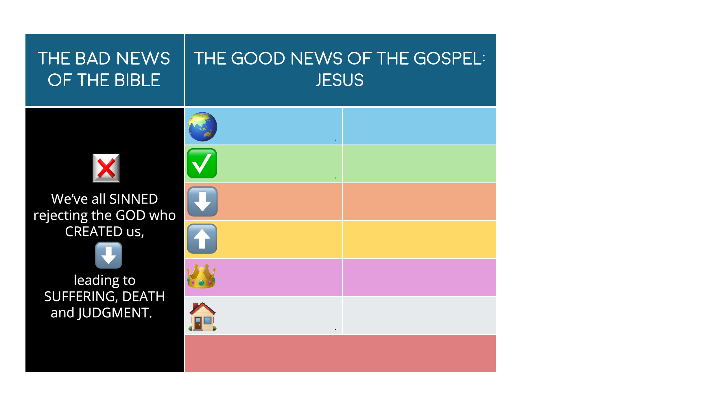 Next up, I display the heading “the good news of the gospel: Jesus” and these 6 emojis.