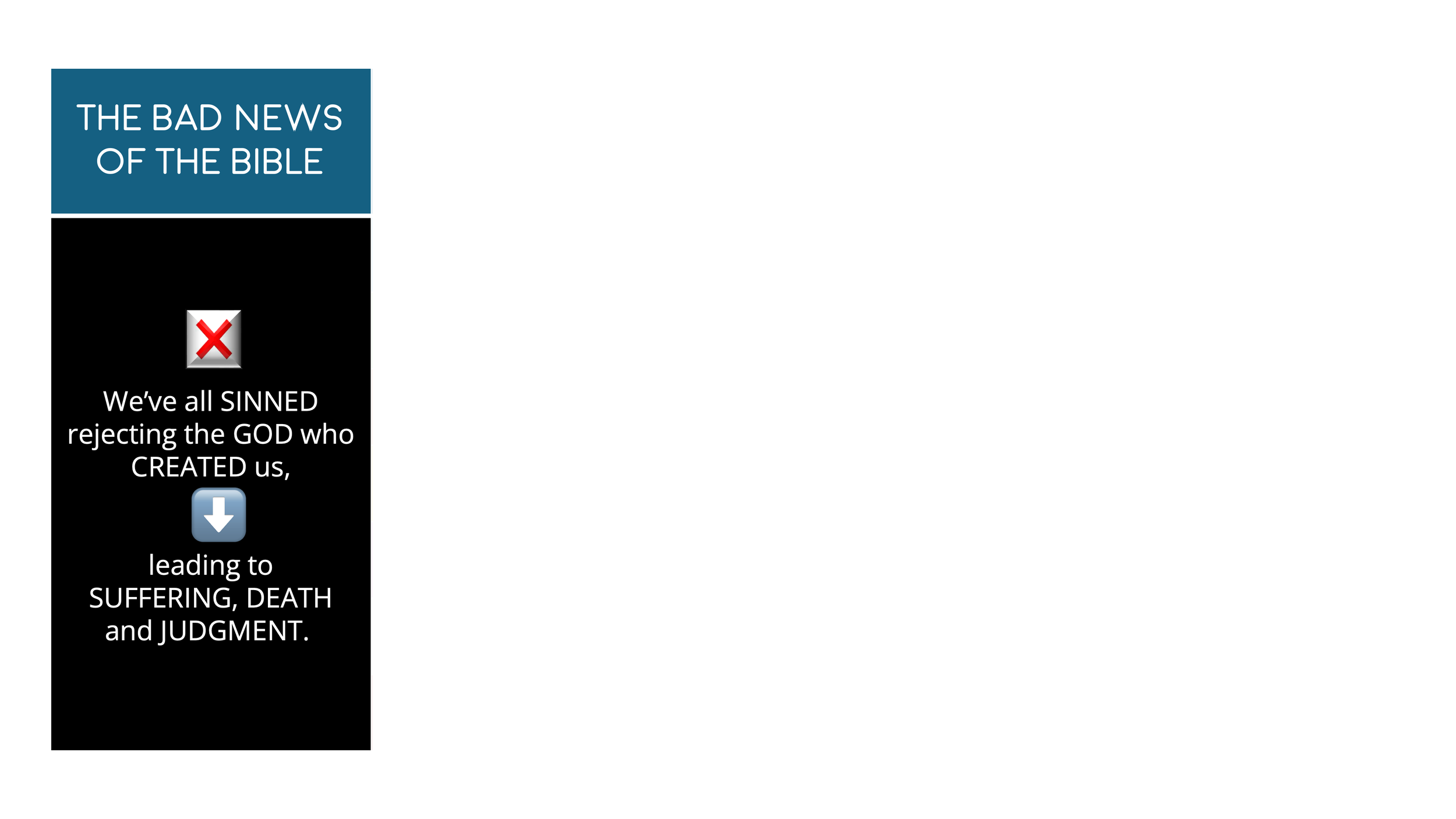 I start off with the “bad news of the Bible”. If the youth don’t understand the bad news, they won’t appreciate the good news. First up, we put these two emojis on the screen to jog their memories. I find that this is usually enough to help them out.