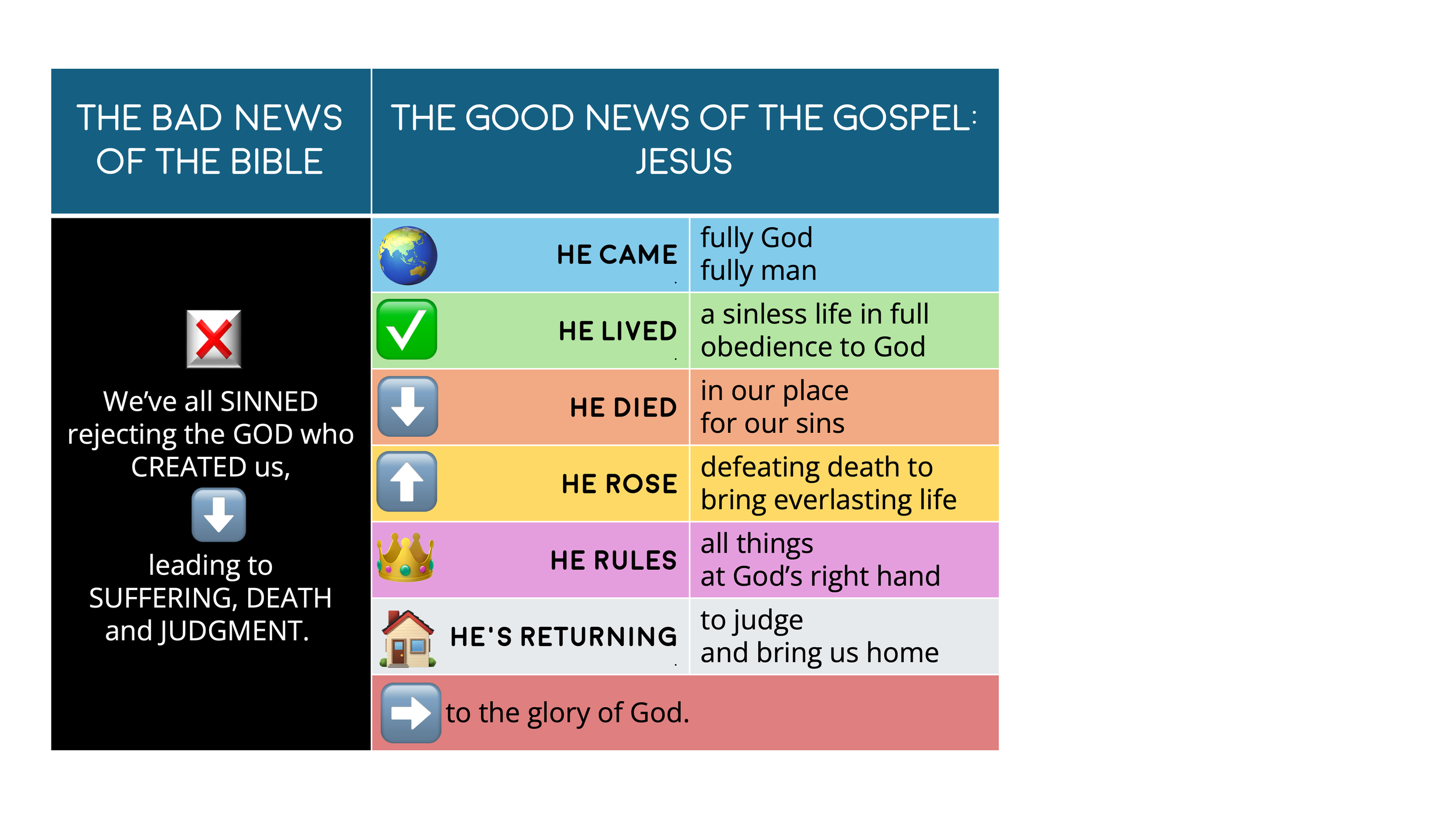 To the glory of God (marked by the ➡️ emoji, to indicate that Jesus did all of this to point to God’s glory)