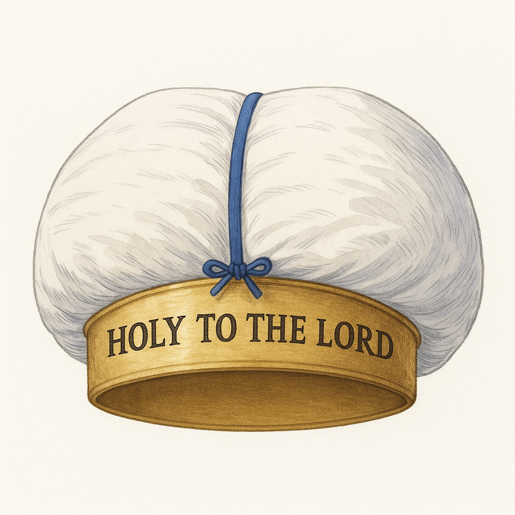 God instructs for a gold plate to be made, engraved with the words "Holy to the LORD" (but in Hebrew). It was then attached to the priest’s turban. It reminded the priest that the LORD is holy, and that he and his nation should strive to be holy. In verse 38, we’re told explicitly why the priest had to wear this: “It will be on Aaron’s forehead continually so that they will be acceptable to the LORD.” It reminded Israel that the LORD is holy and that those who serve him must also be holy.
